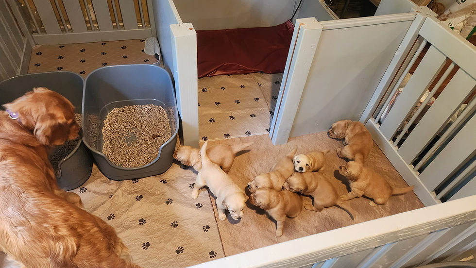 The puppies were born on October 23, 2025, and there are 3 females and 5 males in the litter. Puppies will be ready to go to their new homes by Christmas! They are thriving in their development and have wonderful temperaments.